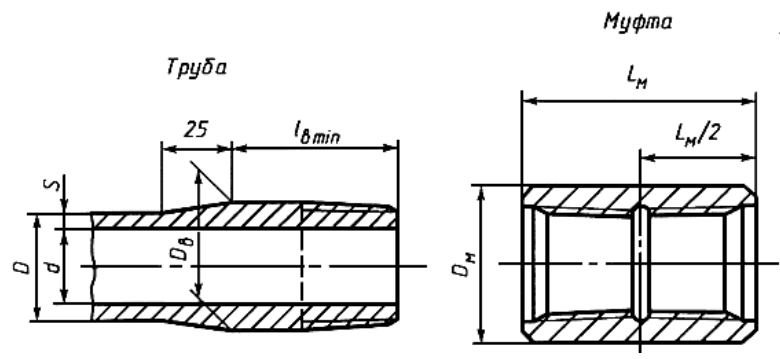 Трубы с высаженными наружу концами и муфты к ним - В (ГОСТ 633-80)