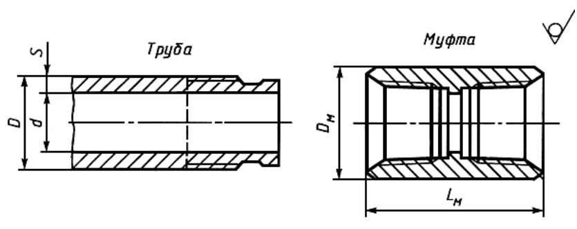Примечание. Для труб и муфт исполнения А после обозначения стандарта ставят букву А.