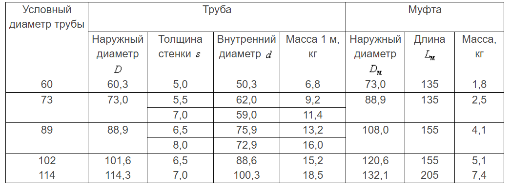Трубы из стали группы прочности Е, условным диаметром 60 мм, с толщиной стенки 5 мм и муфты к ним: